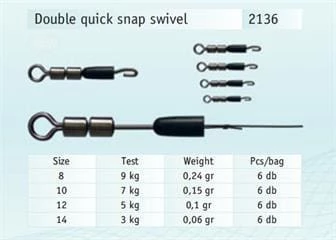 This version of the Quick Snap has aΒ double round eyeΒ swivel with a hook for attaching loop on hook length. Rubber collar slides over for a neat anti tangle set up.