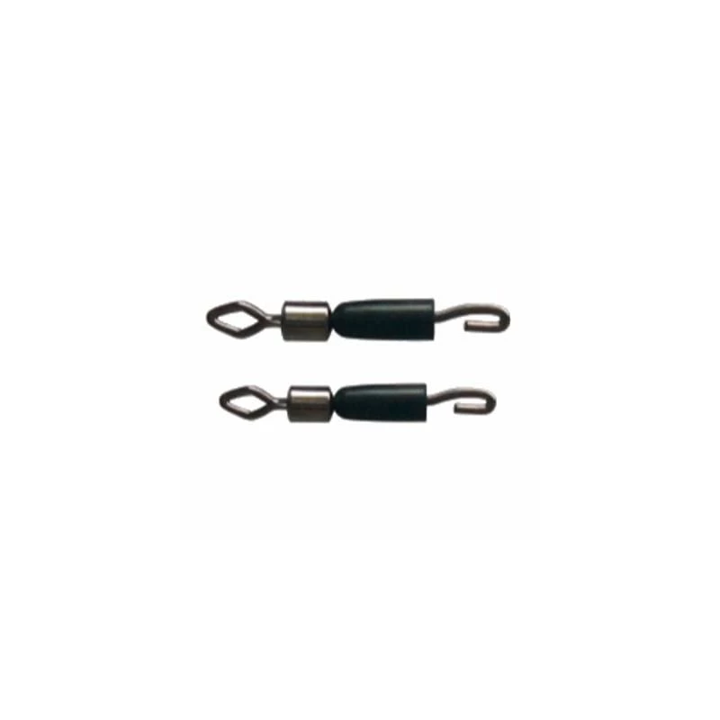 These are a small diamond eye swivel, with a hook for attaching a loop at the other end. A rubber collar then slides over the hook for a neat anti-tangle set up.