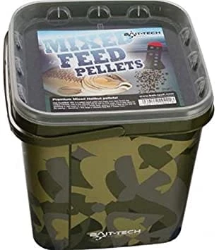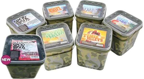 Bait-Tech s Camo buckets are amazing value. They have our unique design on a bucket that you can re-use! Camo buckets come in either pellets or