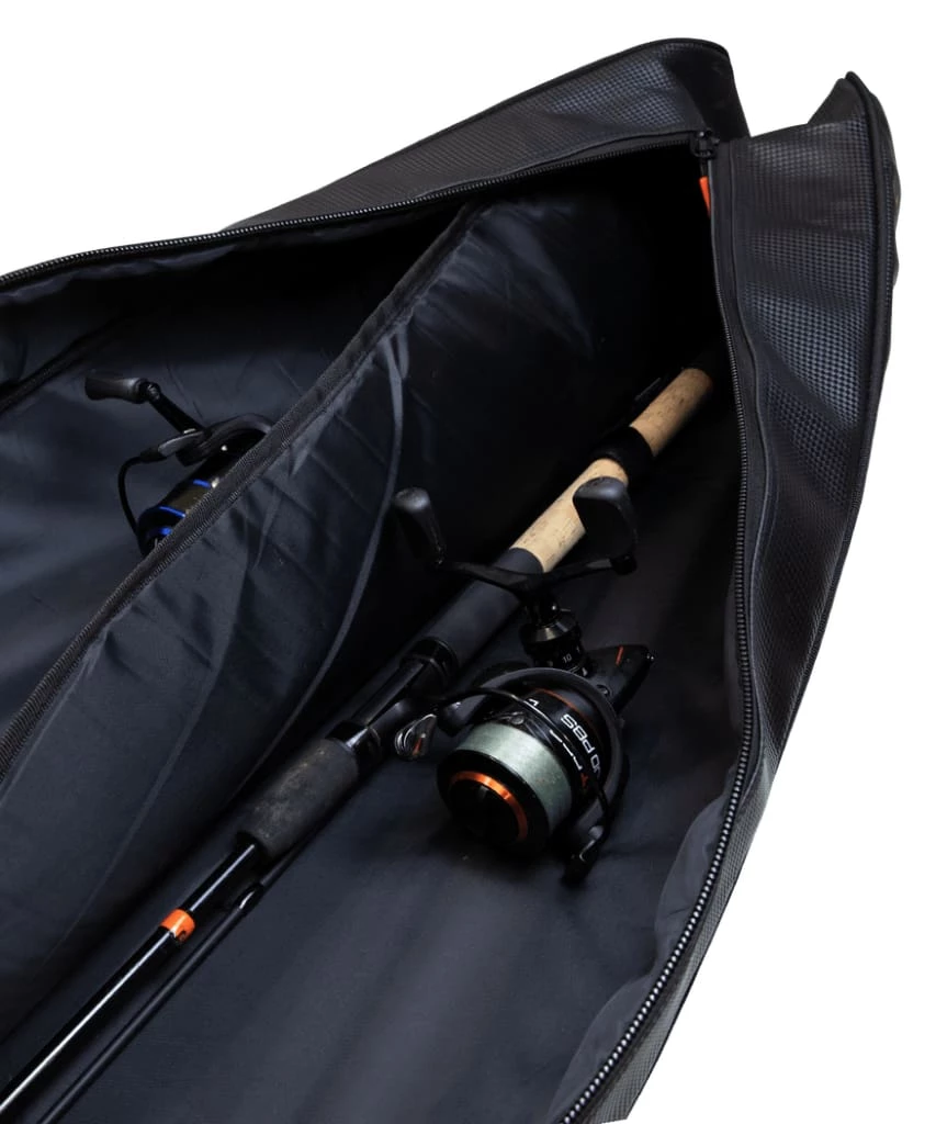 - Rigid construction for superior protection of 12ft two-piece rods with large sized reels.