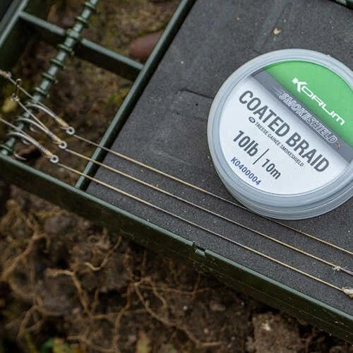 Powerful and reliable hook length materials designed to provide maximum camouflage, strength and durability when targeting big fish. The fast sinking Smokescreen braid inner and abrasion-resistant Smokeshield outer coating have been vigorously tested to give specimen anglers 100% confidence for all styles of fishing. Great for combi-rigs, or used with the coating left intact for tangle resistant setups.