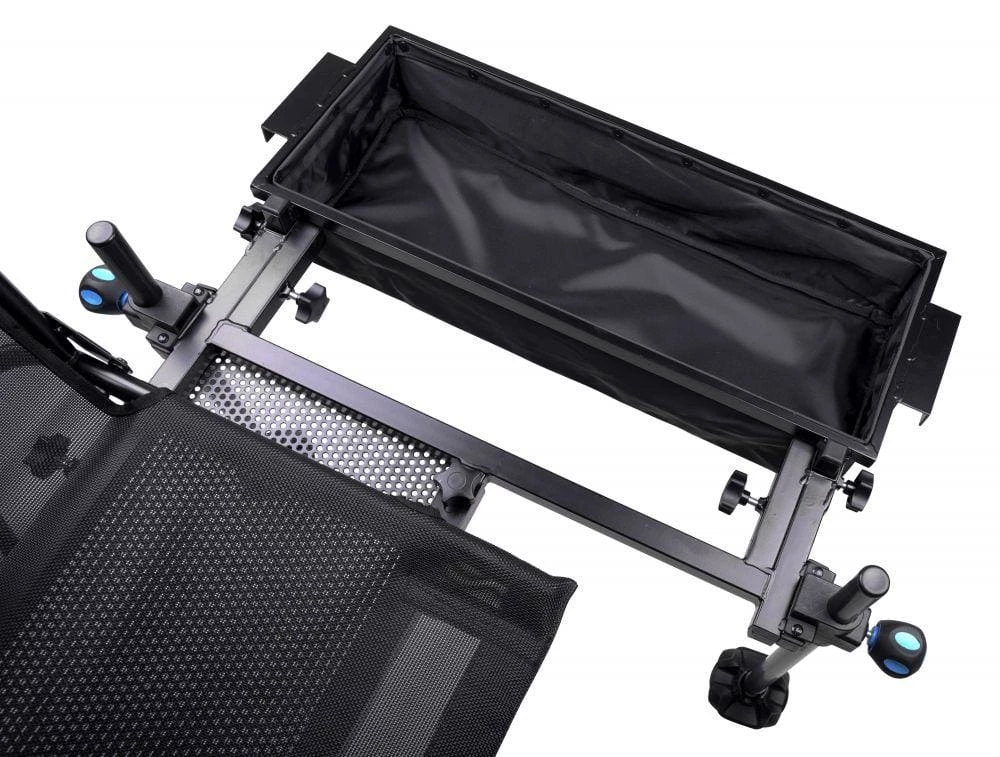 This Blackthorne Barrow seat combines the comfort of a chair with the stability of a seat box or platform and also has a barrow system with integrated side platforms. This makes the Barrow seat ideal for anglers who want to assemble their equipment compactly and mobile in order to make remote cuttings comfortably accessible.