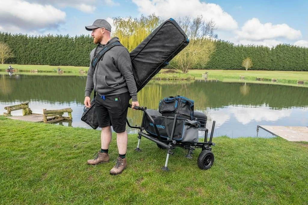This allows the wheel kit arms to be left fitted to the seat box which enables the angler to simply remove the wheels and pull handle making it easy to assemble. Supplied with two robust wheels, super strong connecting knuckles and a pull handle the Off Box Wheel Kit can transport heavy loads with ease, perfect for the modern-day angler.