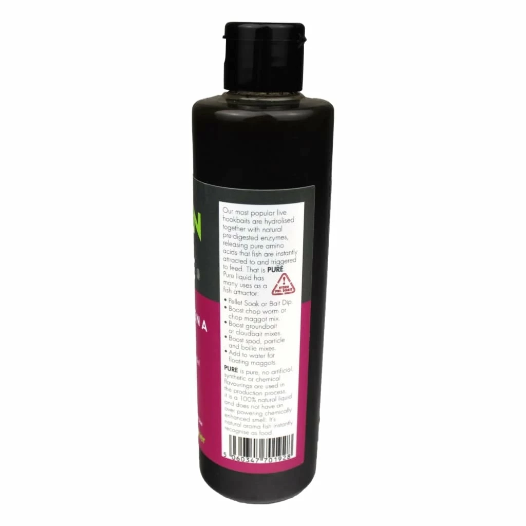 PURE is pure, no artificial, synthetic or chemical flavourings are used in the production process, It is a 100% natural liquid and does not have an over powering chemically enhanced smell. It’s natural aroma fish instantly recognise as food.